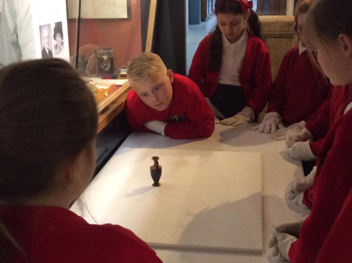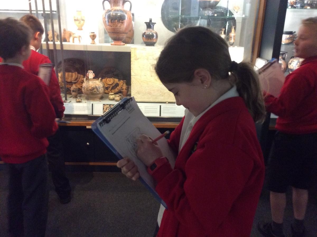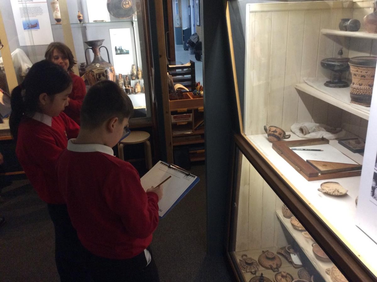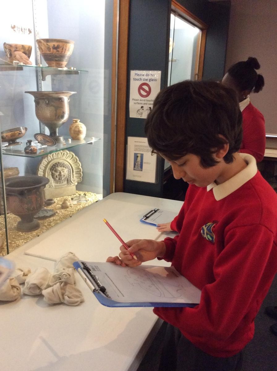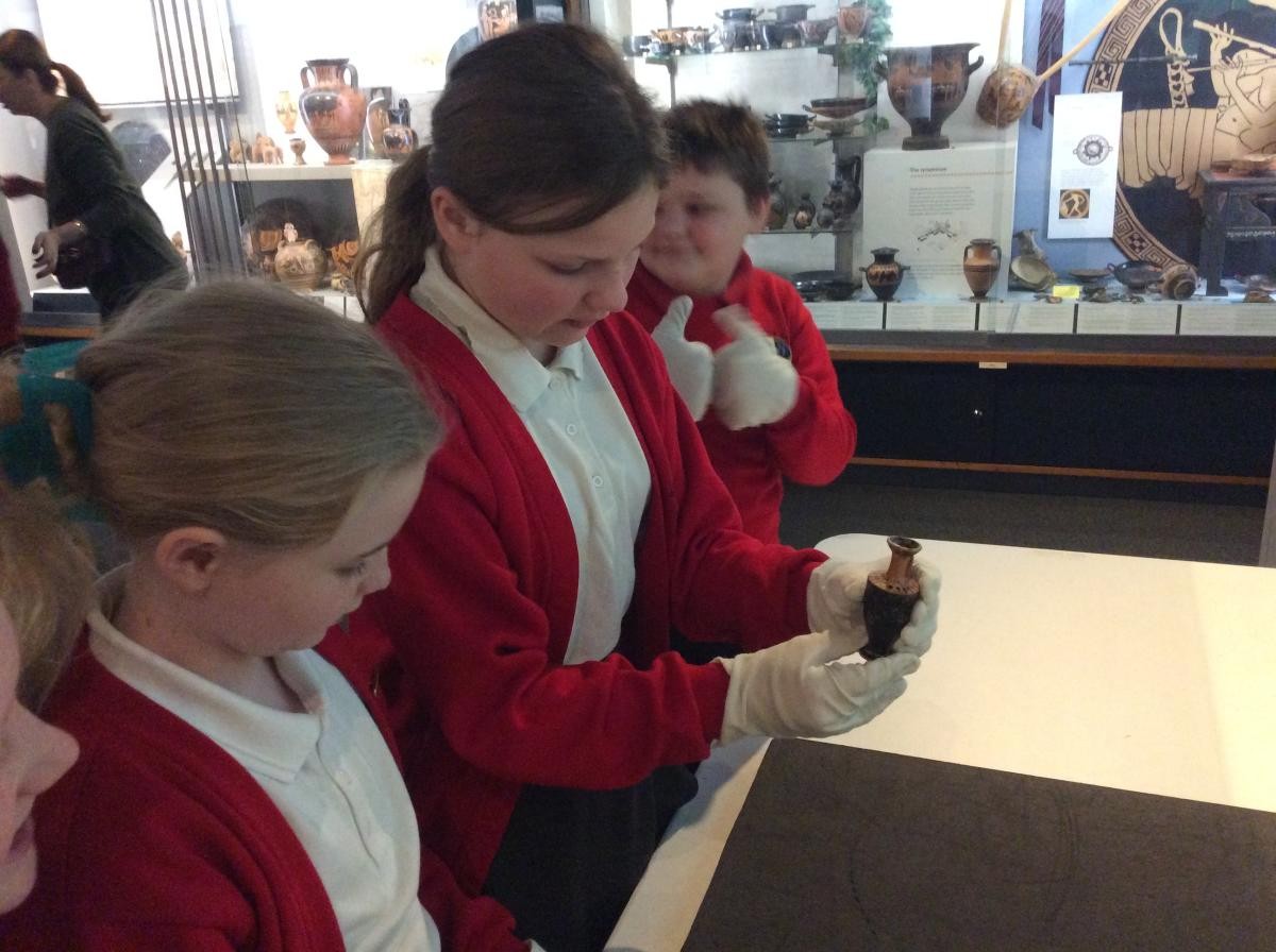 Years 5 and 6 travelled in classes to the Ure Museum at Reading University and spent a morning studying Ancient Greek pottery. They completed a variety of tasks including handling some different pots and trying to work out what they were used for.