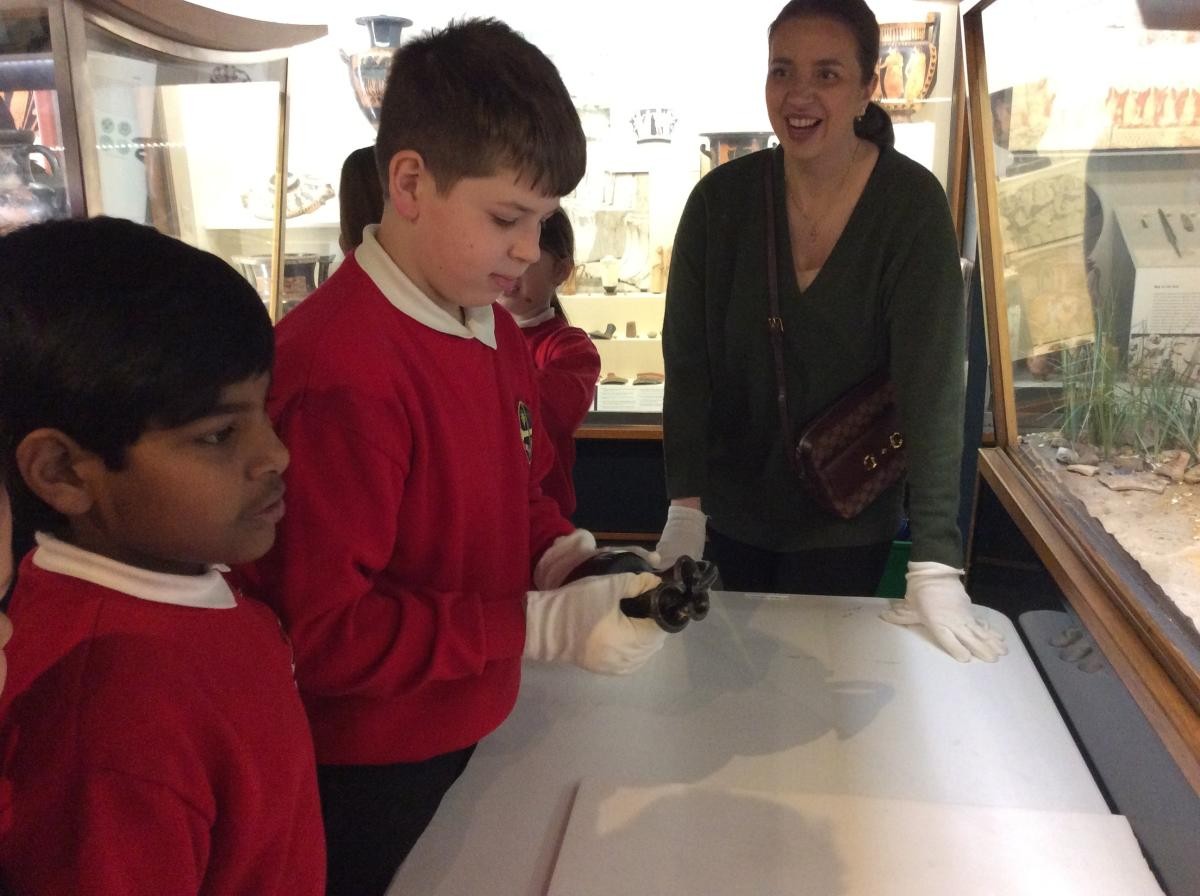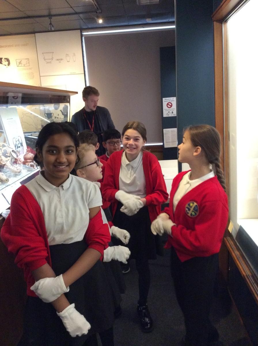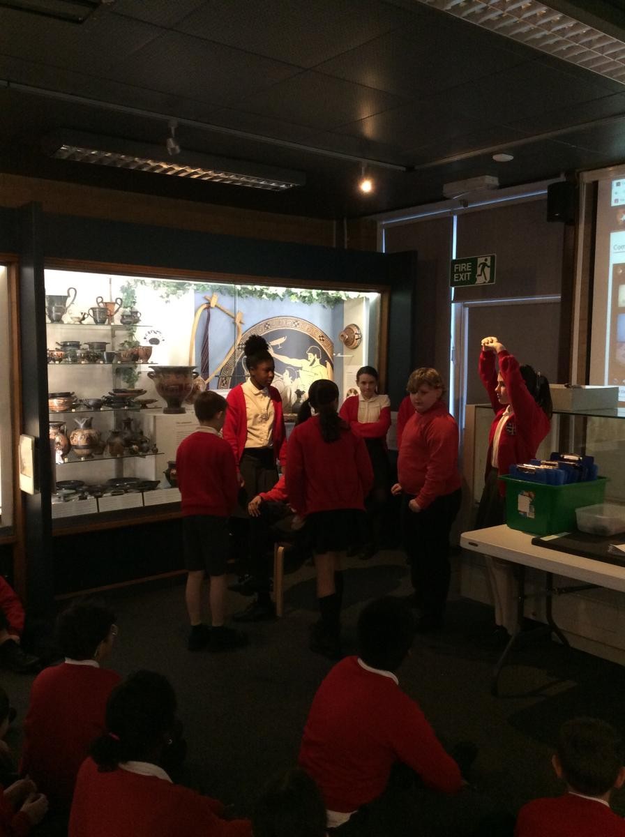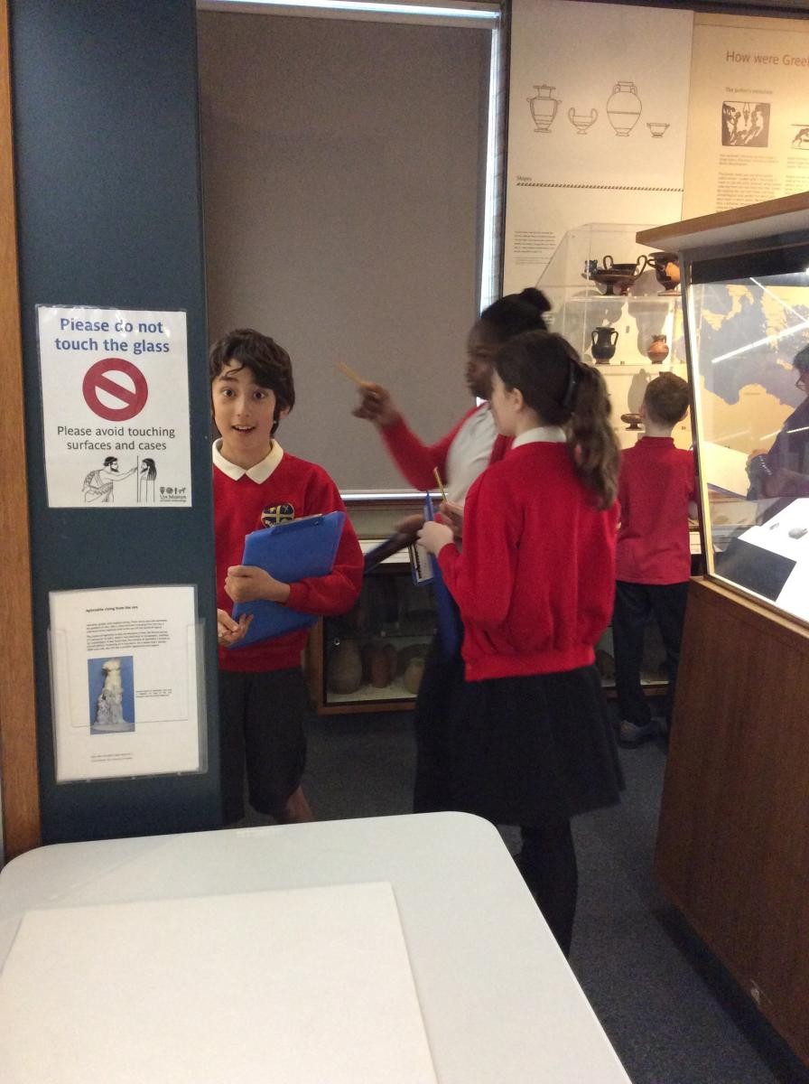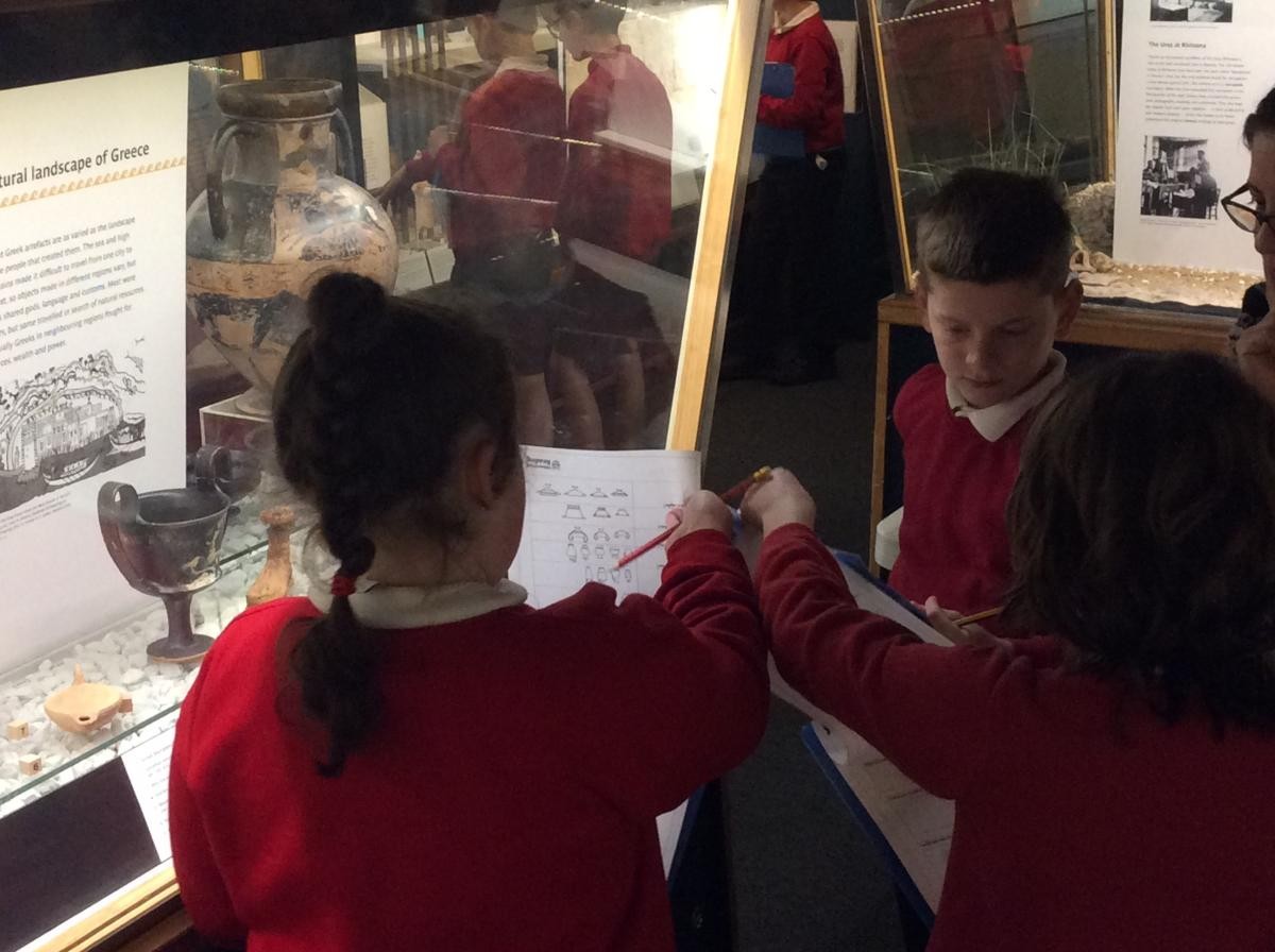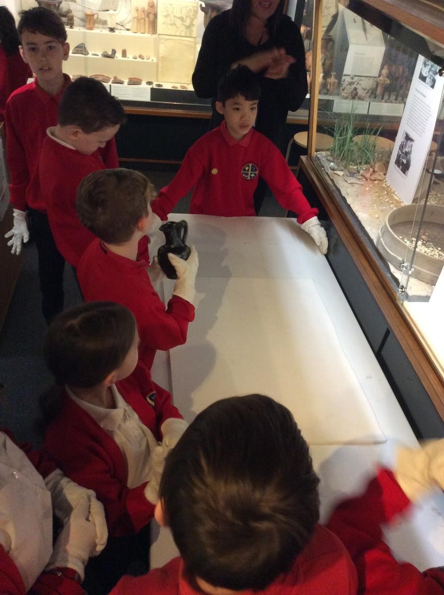 Years 5 and 6 travelled in classes to the Ure Museum at Reading University and spent a morning studying Ancient Greek pottery. They completed a variety of tasks including handling some different pots and trying to work out what they were used for.