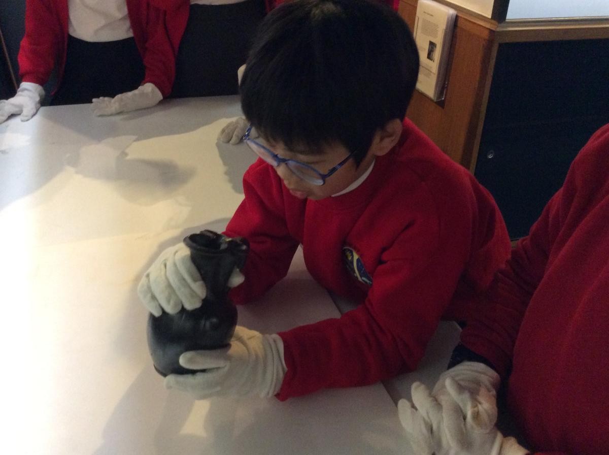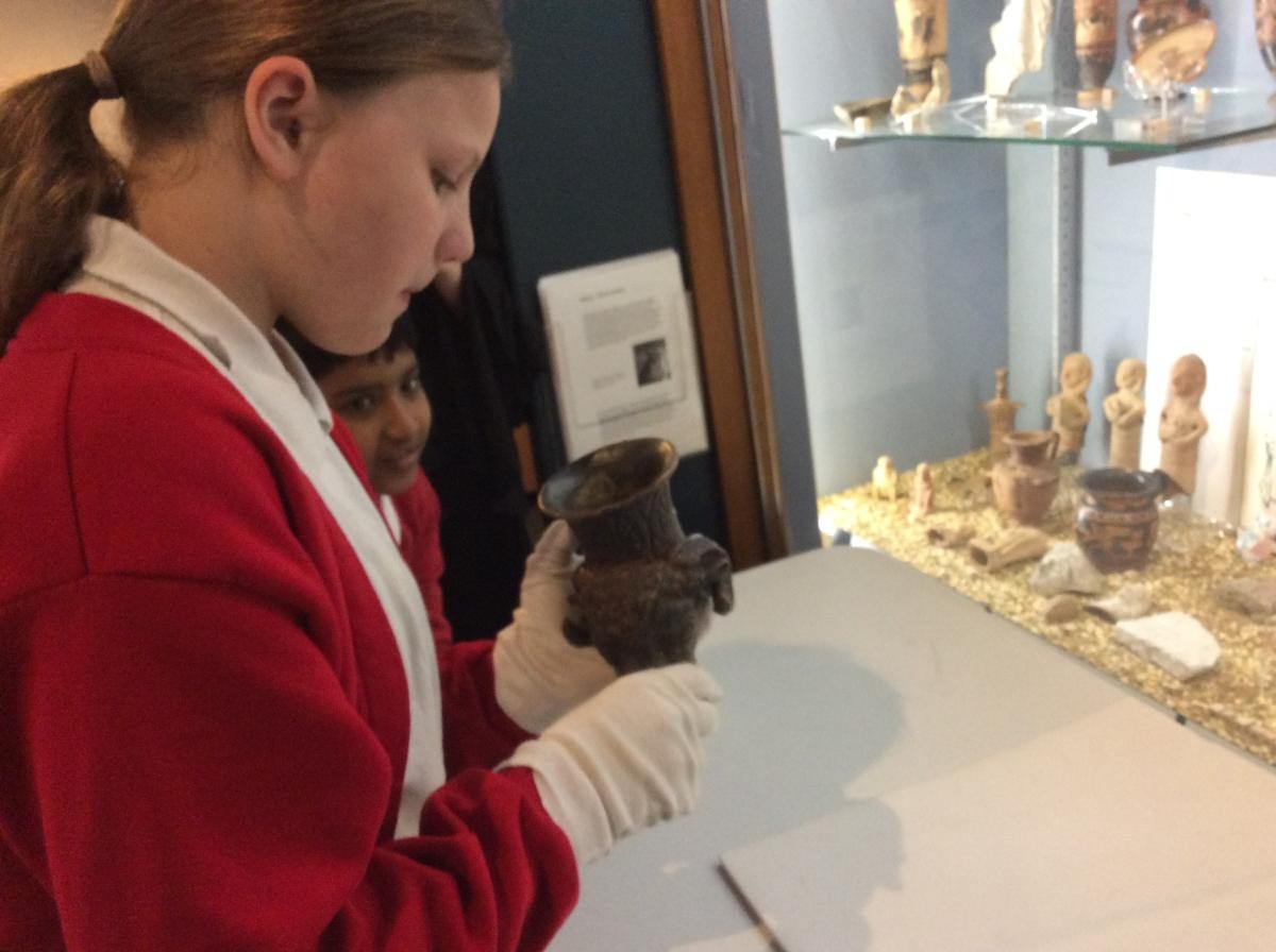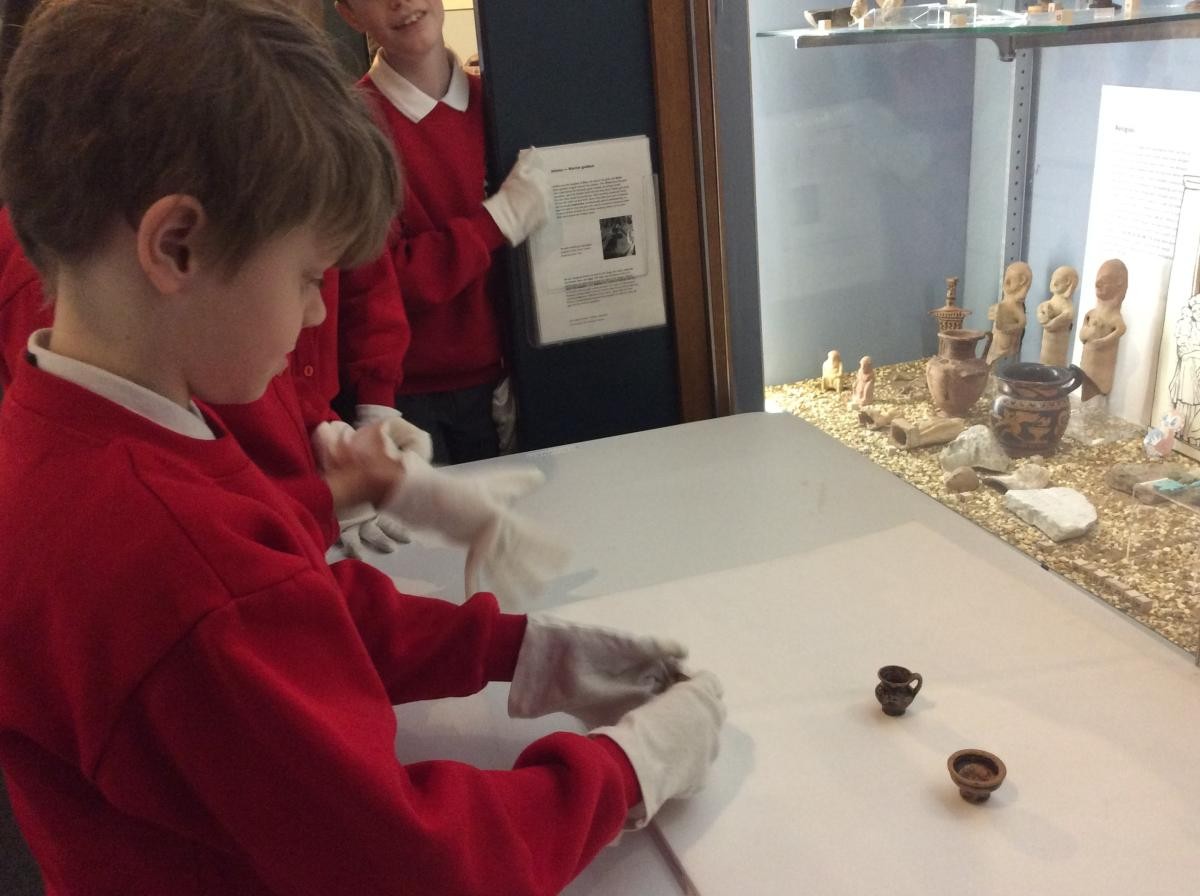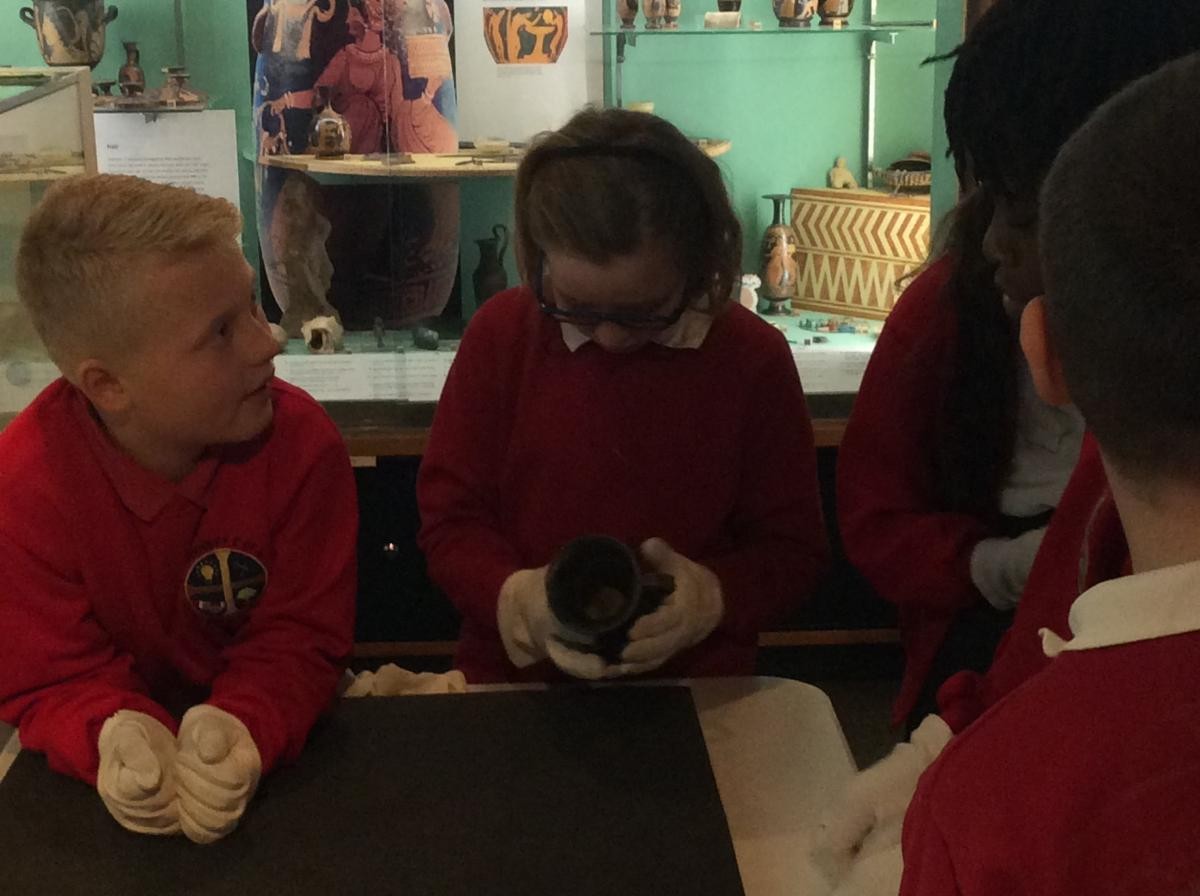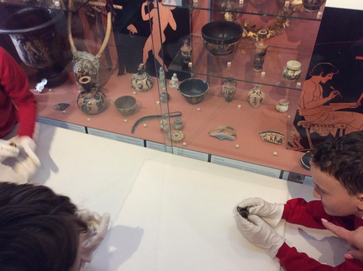 Years 5 and 6 travelled in classes to the Ure Museum at Reading University and spent a morning studying Ancient Greek pottery. They completed a variety of tasks including handling some different pots and trying to work out what they were used for.