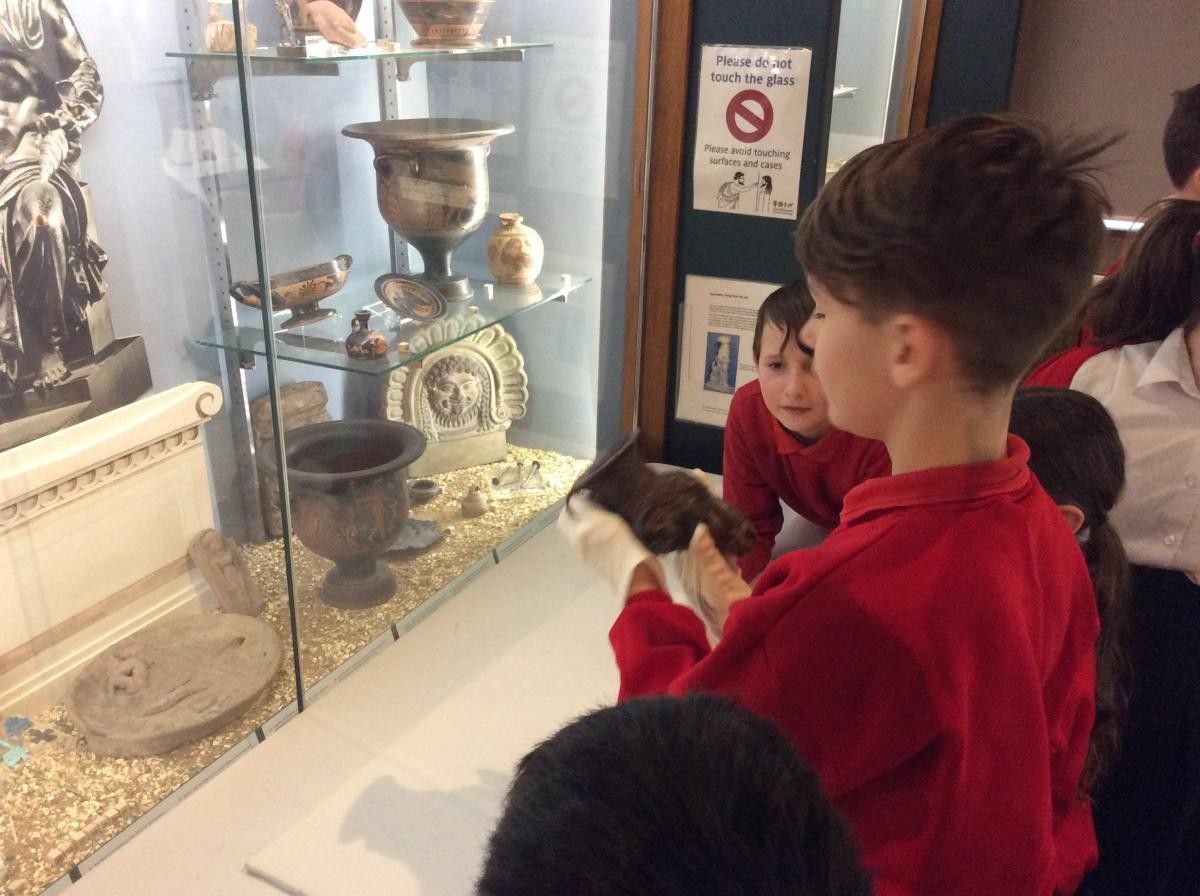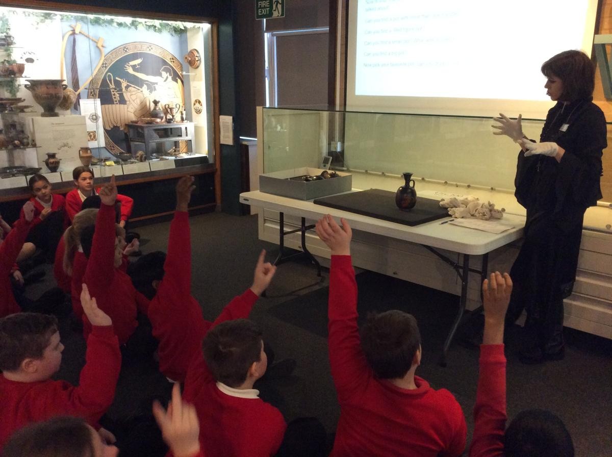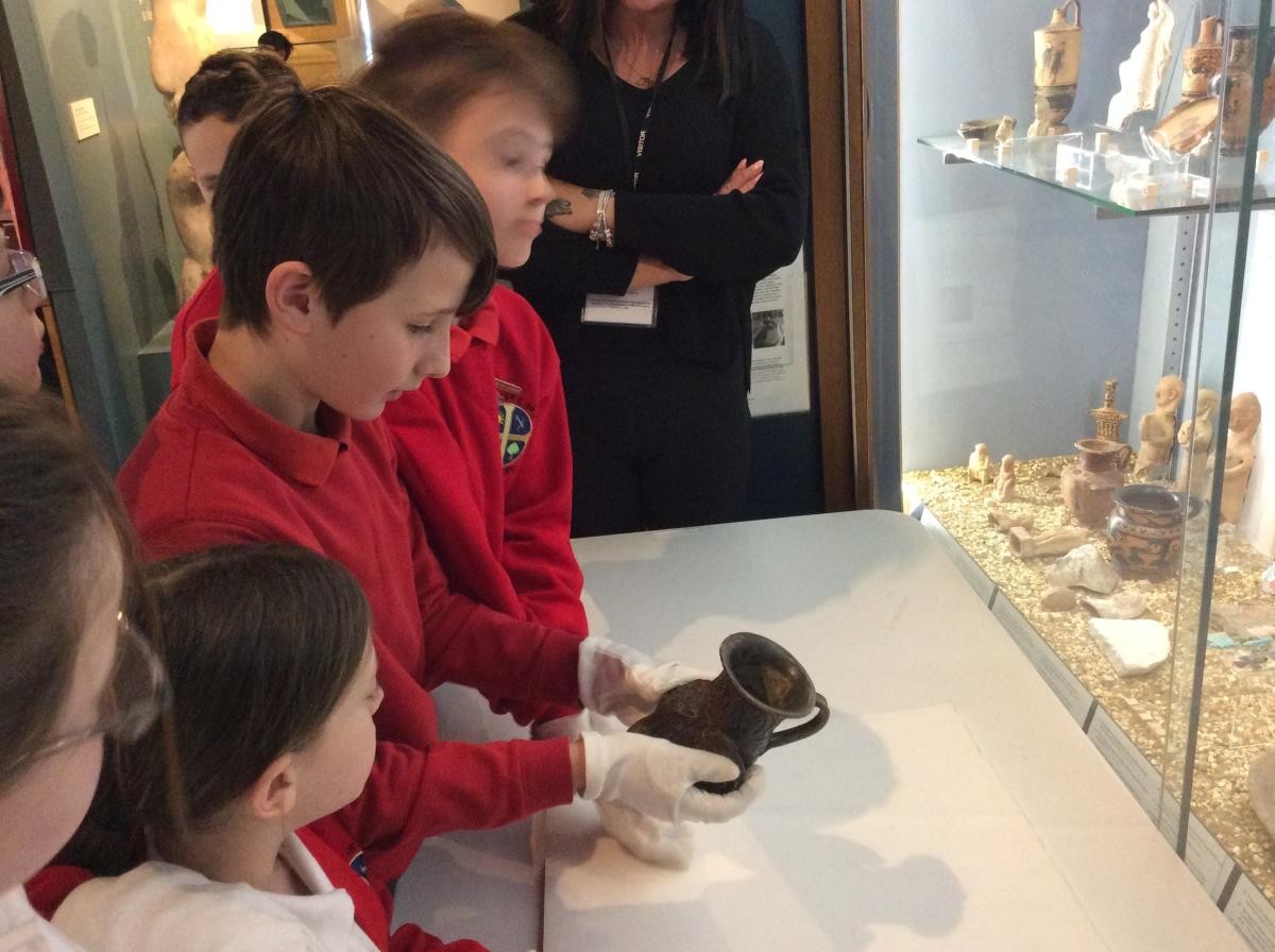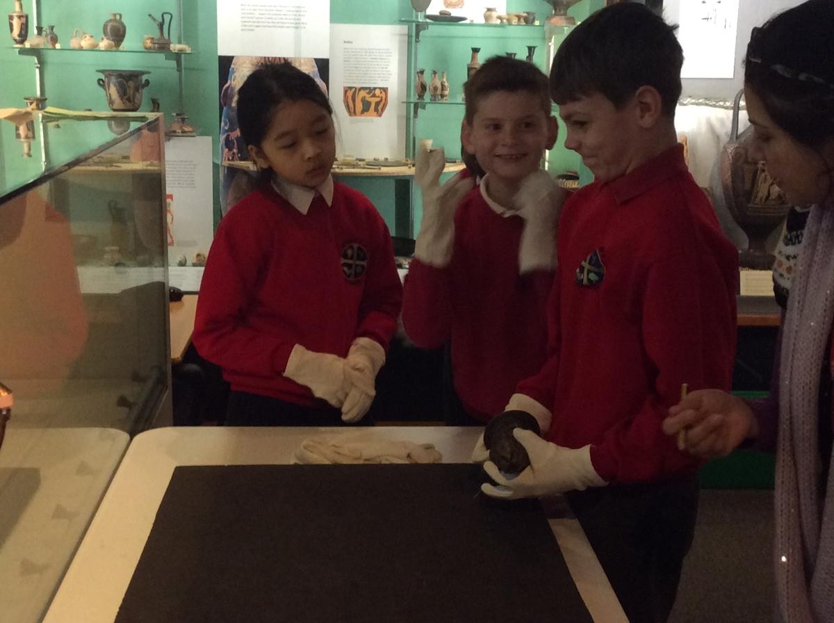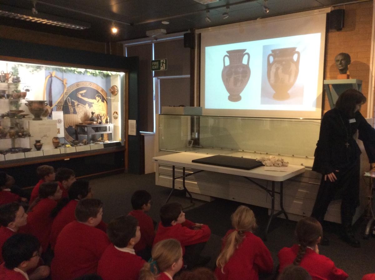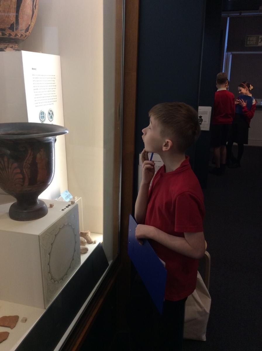 Years 5 and 6 travelled in classes to the Ure Museum at Reading University and spent a morning studying Ancient Greek pottery. They completed a variety of tasks including handling some different pots and trying to work out what they were used for.