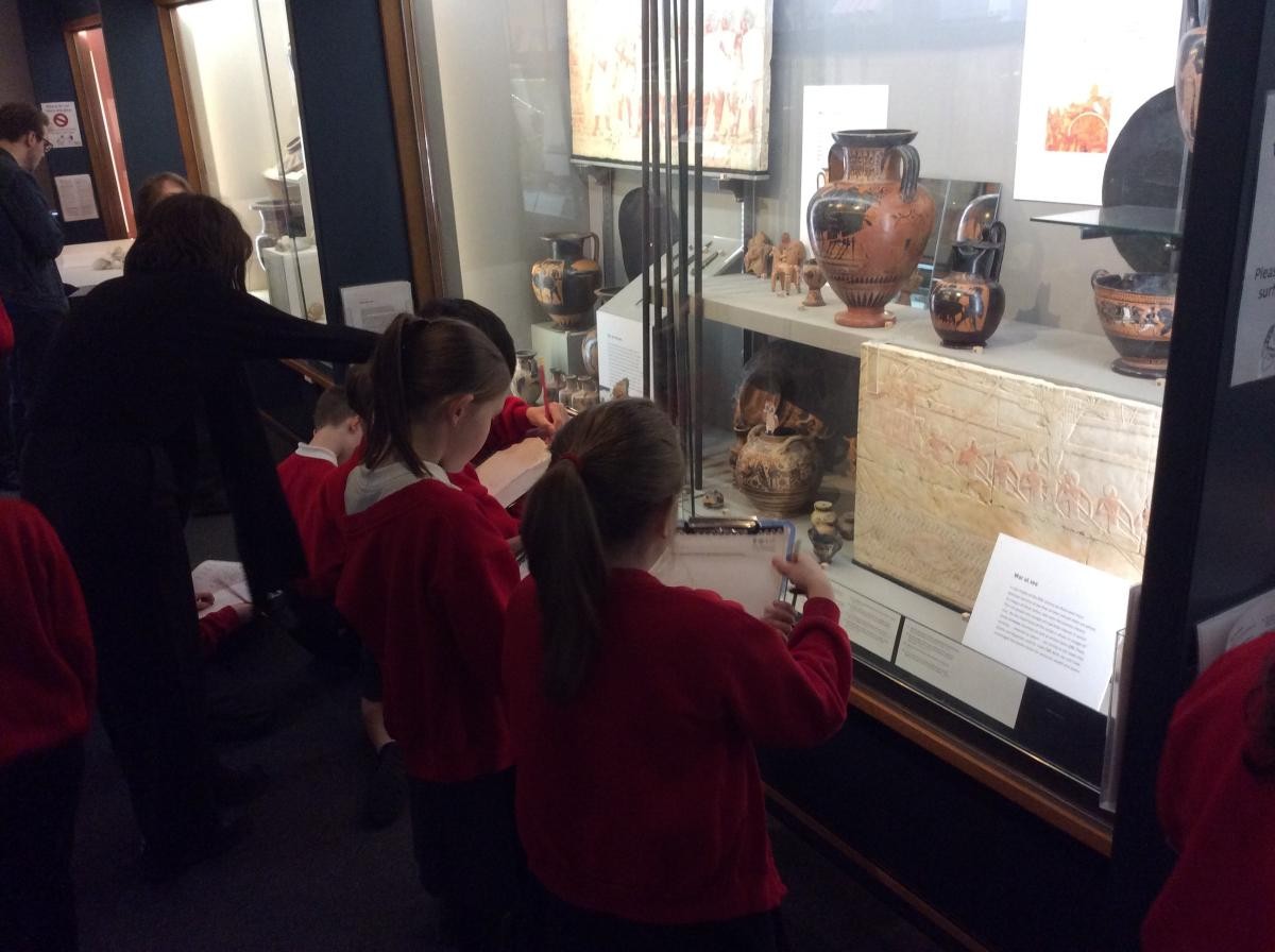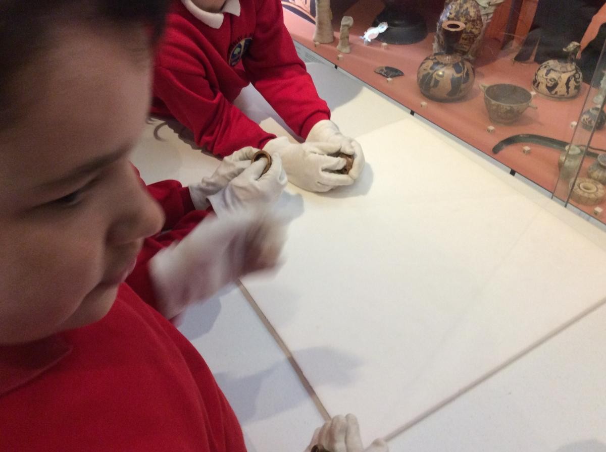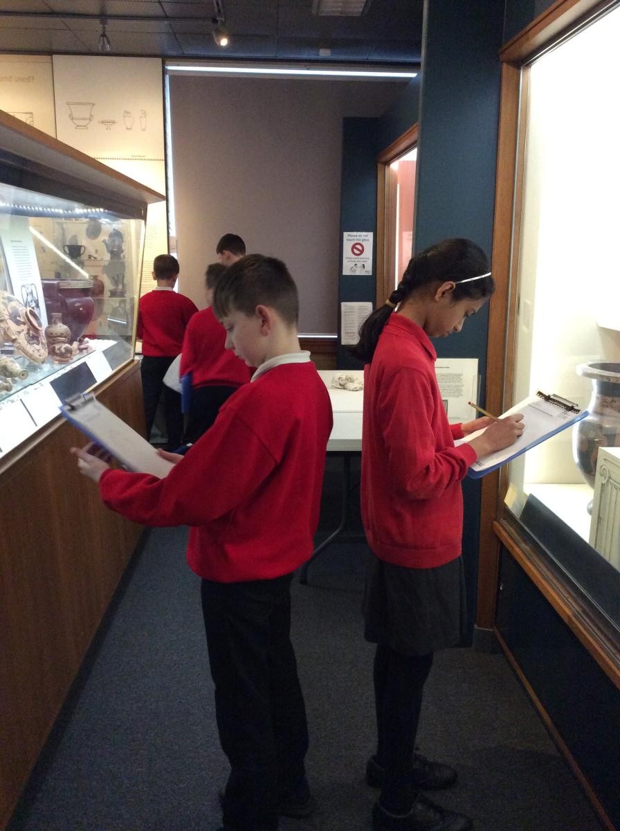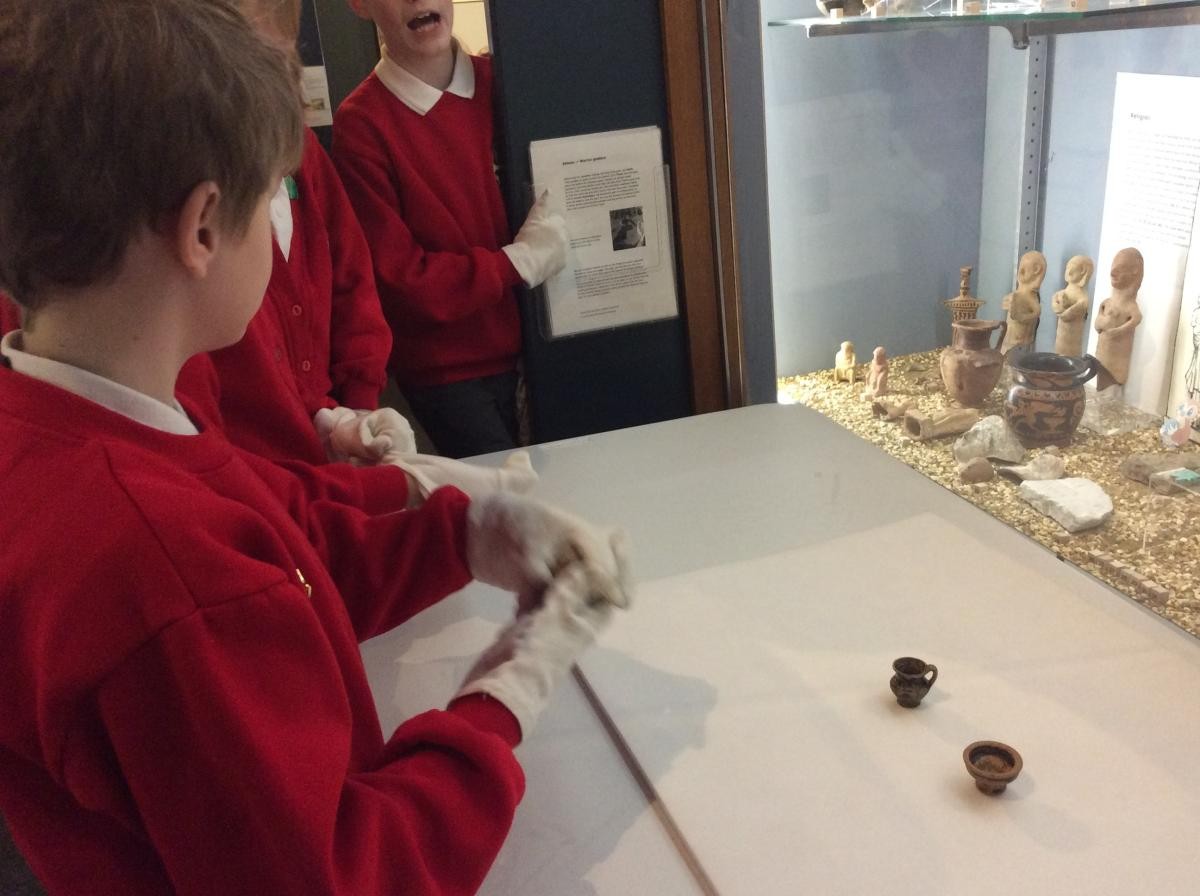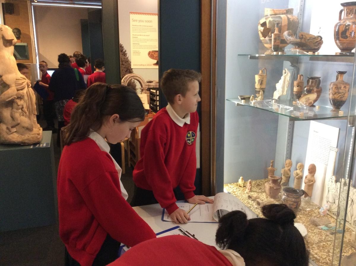 Years 5 and 6 travelled in classes to the Ure Museum at Reading University and spent a morning studying Ancient Greek pottery. They completed a variety of tasks including handling some different pots and trying to work out what they were used for.