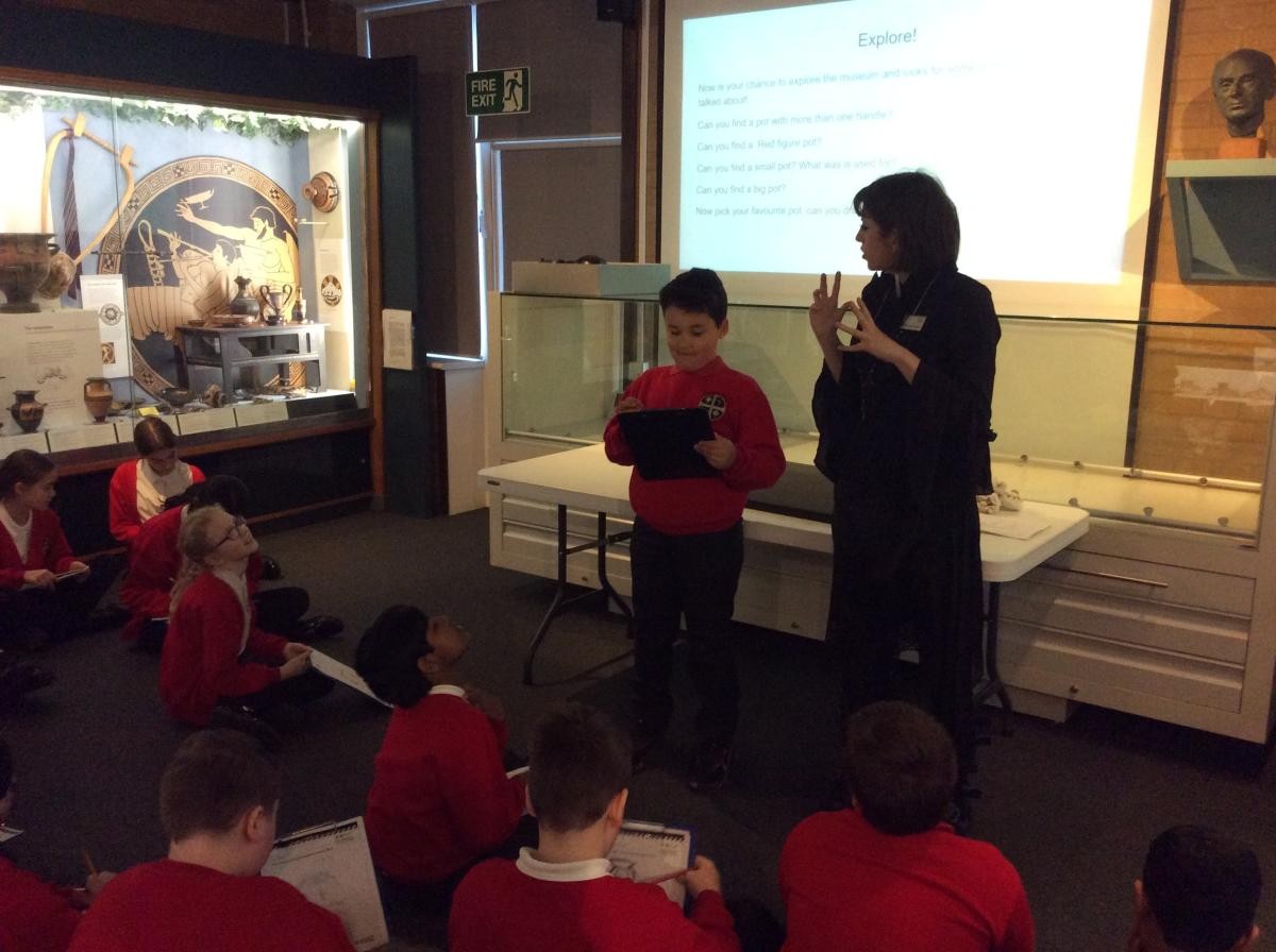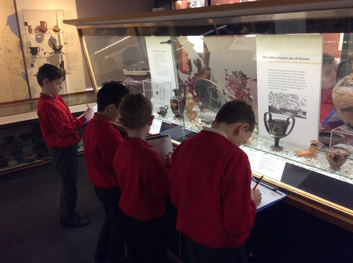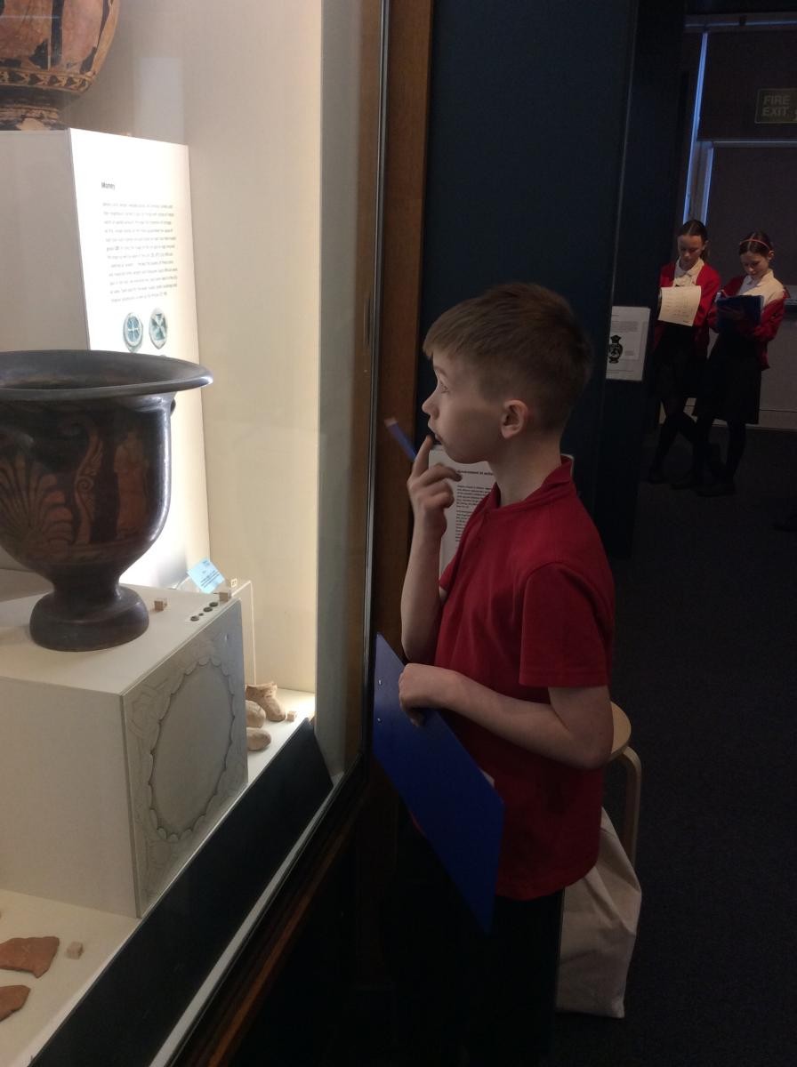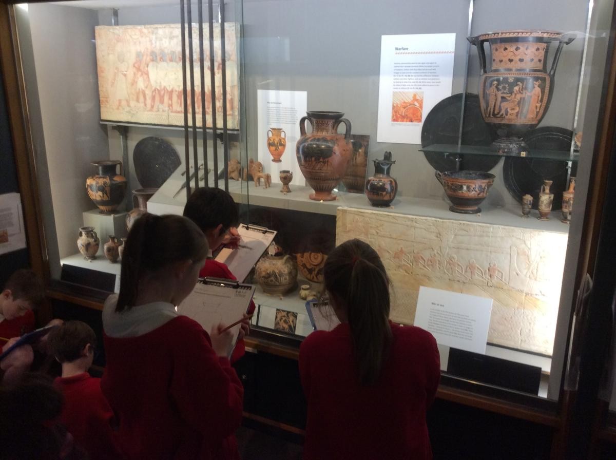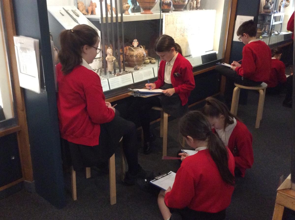 Years 5 and 6 travelled in classes to the Ure Museum at Reading University and spent a morning studying Ancient Greek pottery. They completed a variety of tasks including handling some different pots and trying to work out what they were used for.