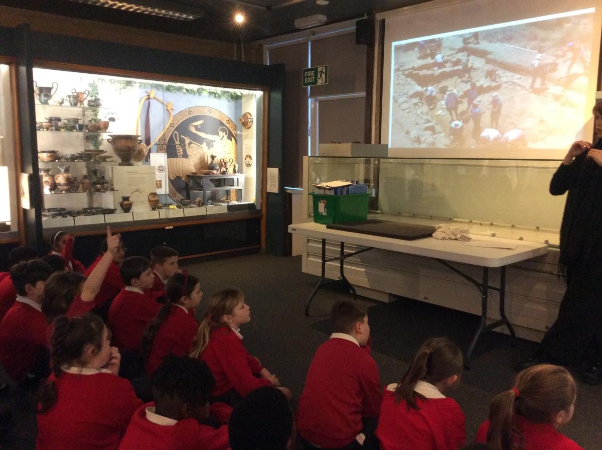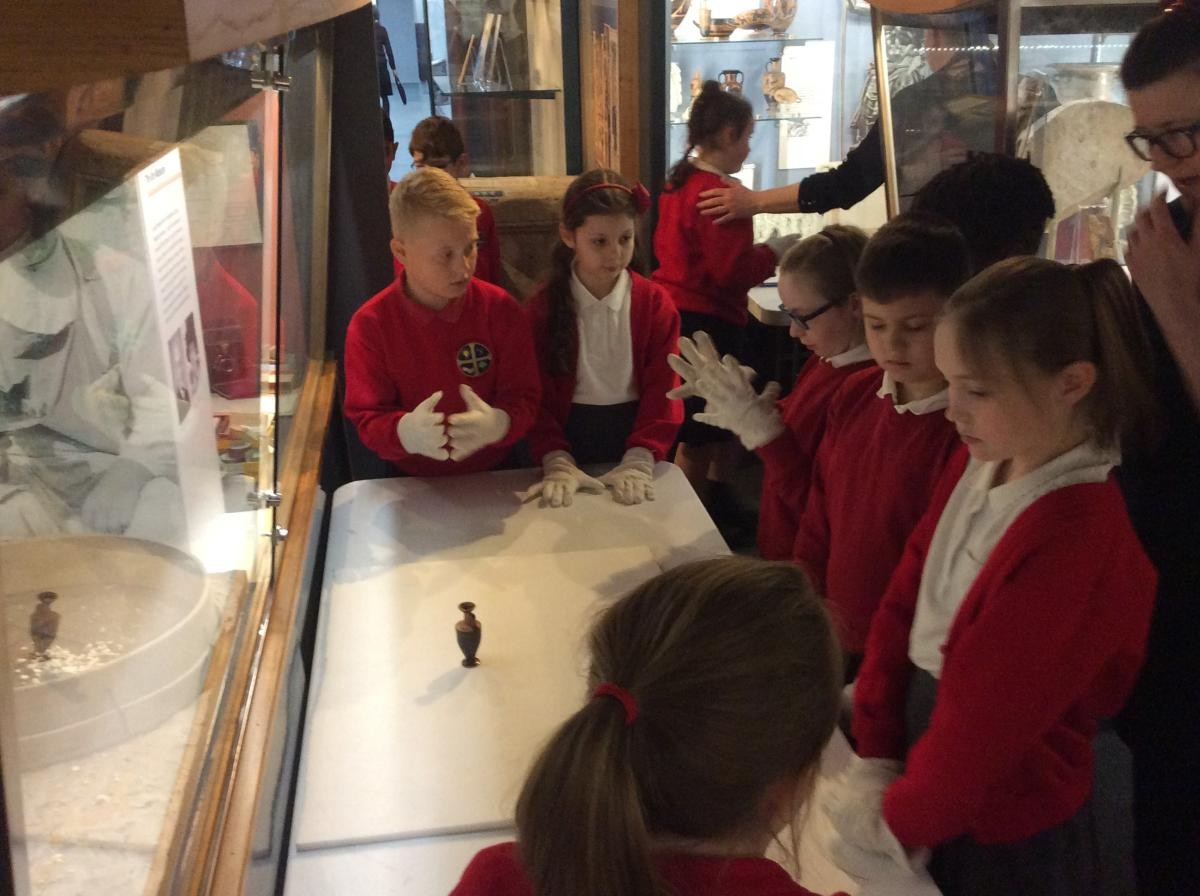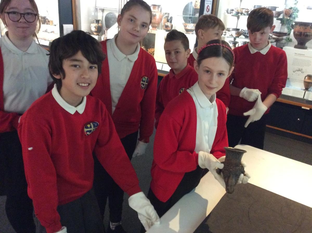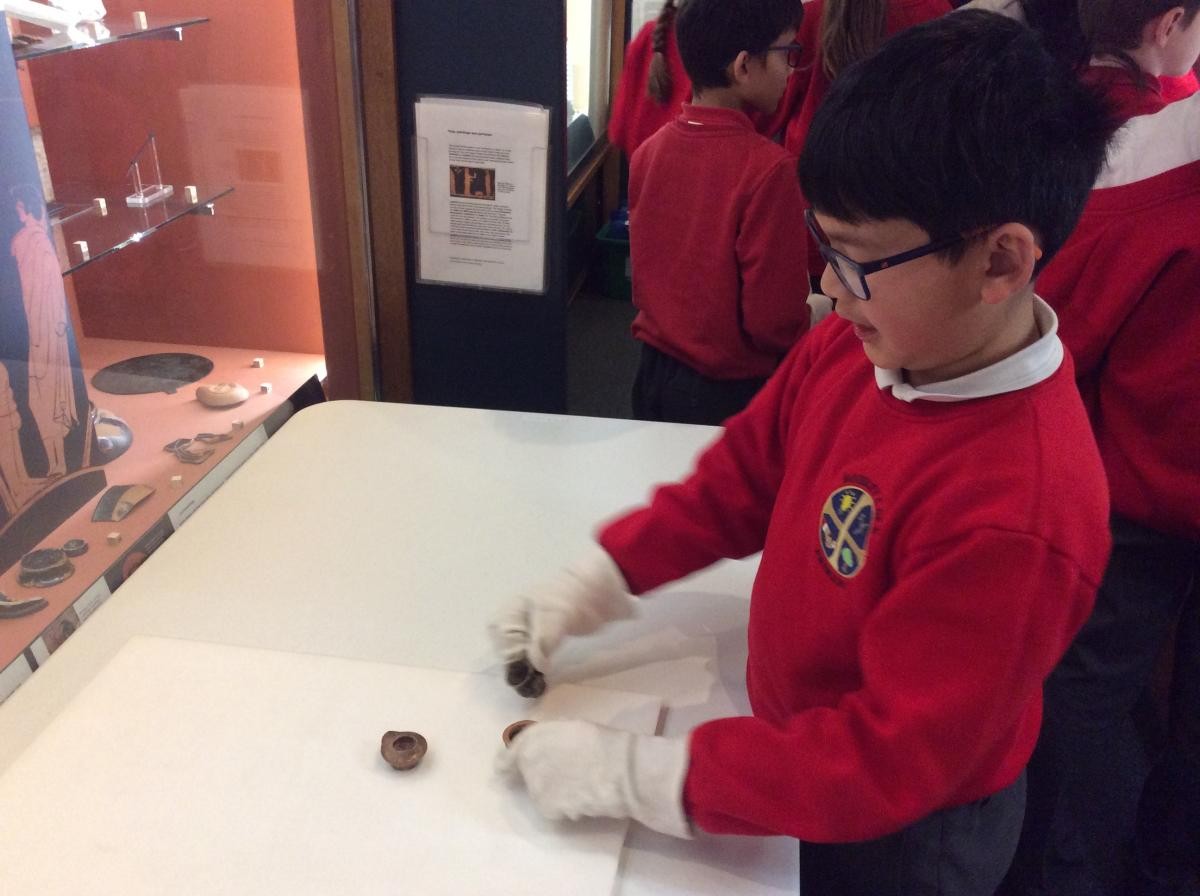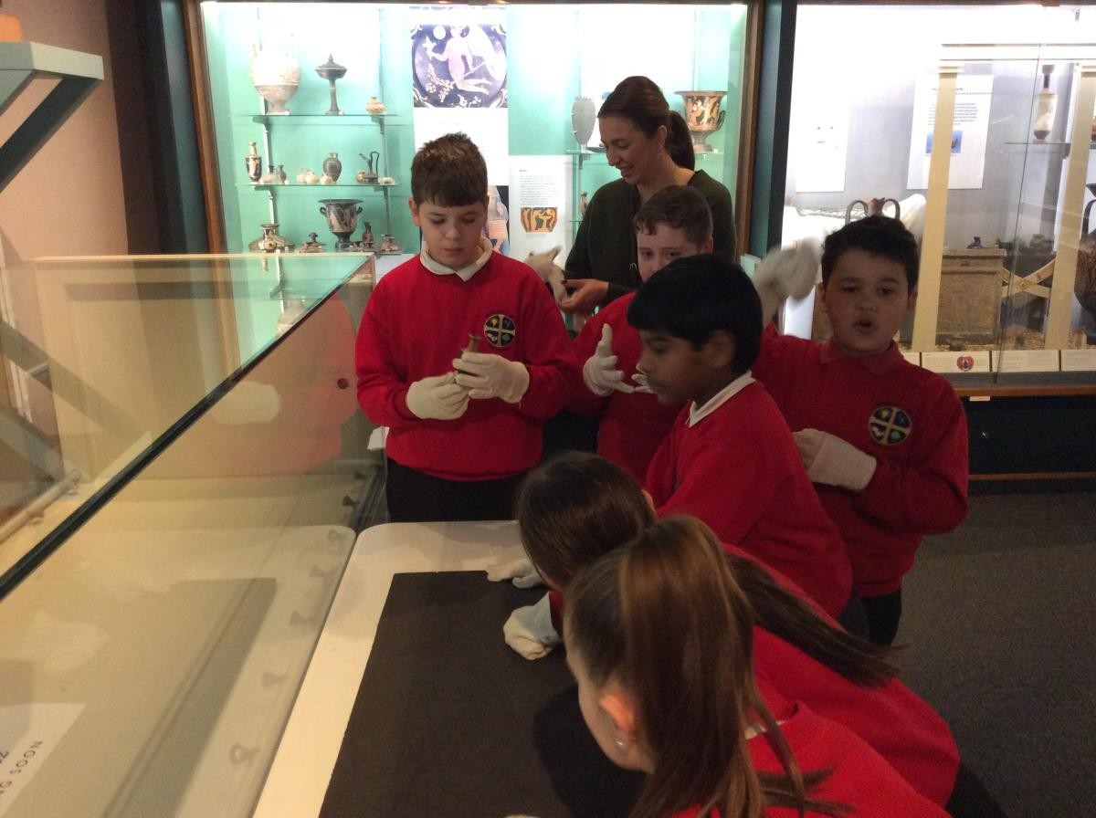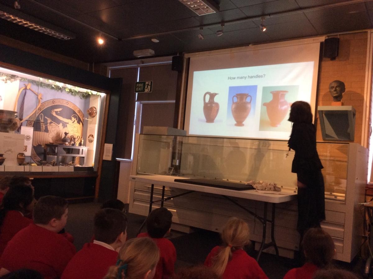 Years 5 and 6 travelled in classes to the Ure Museum at Reading University and spent a morning studying Ancient Greek pottery. They completed a variety of tasks including handling some different pots and trying to work out what they were used for.