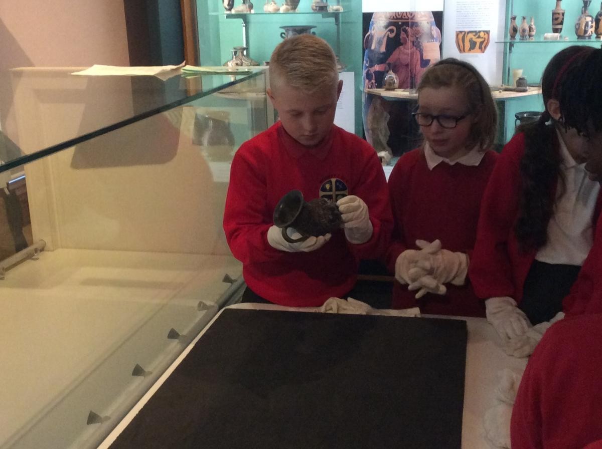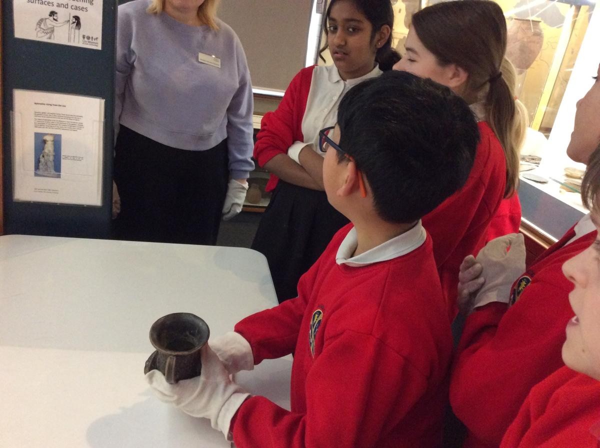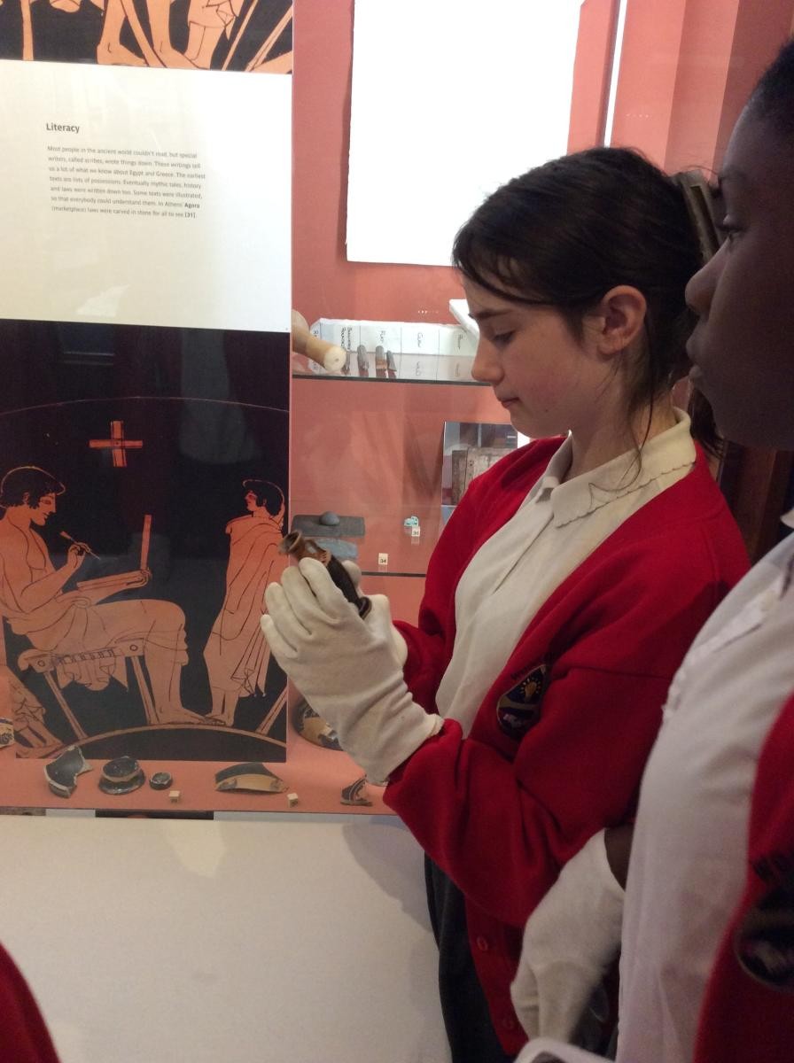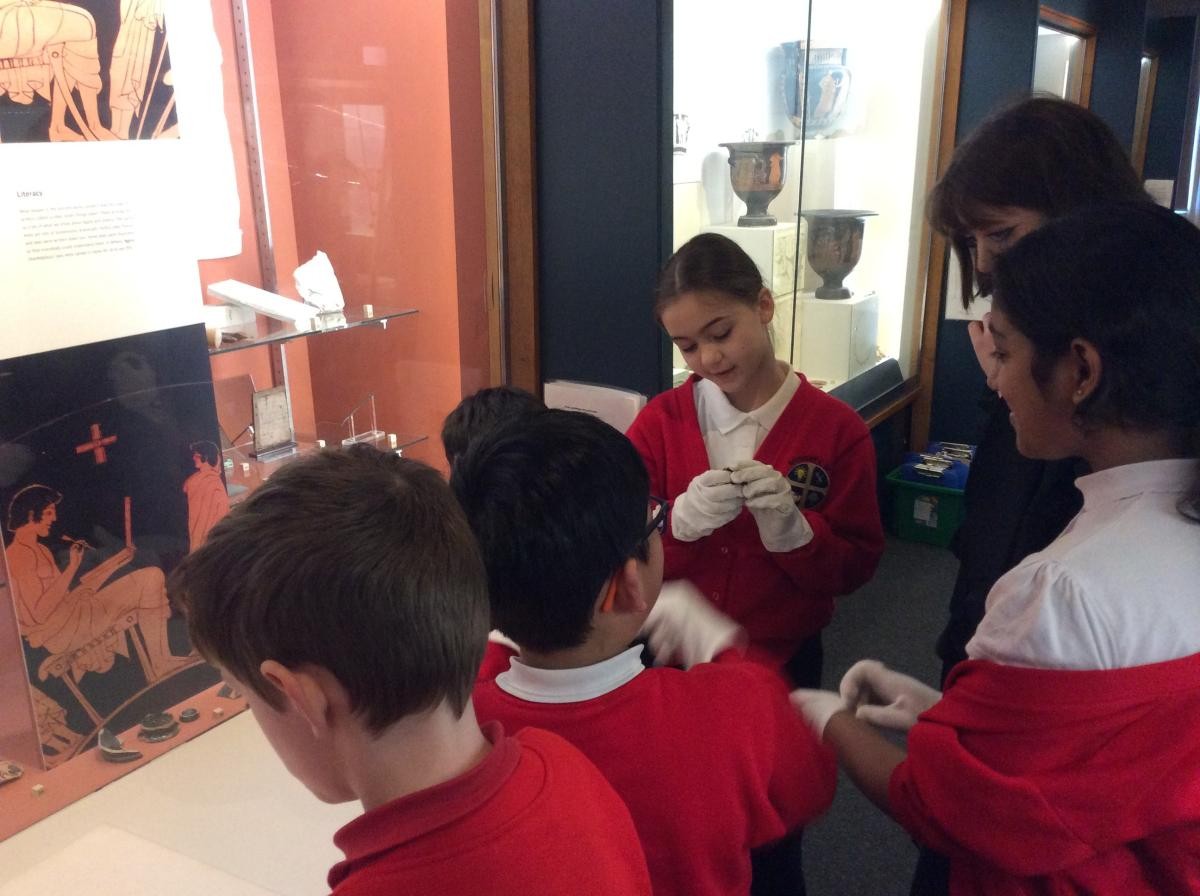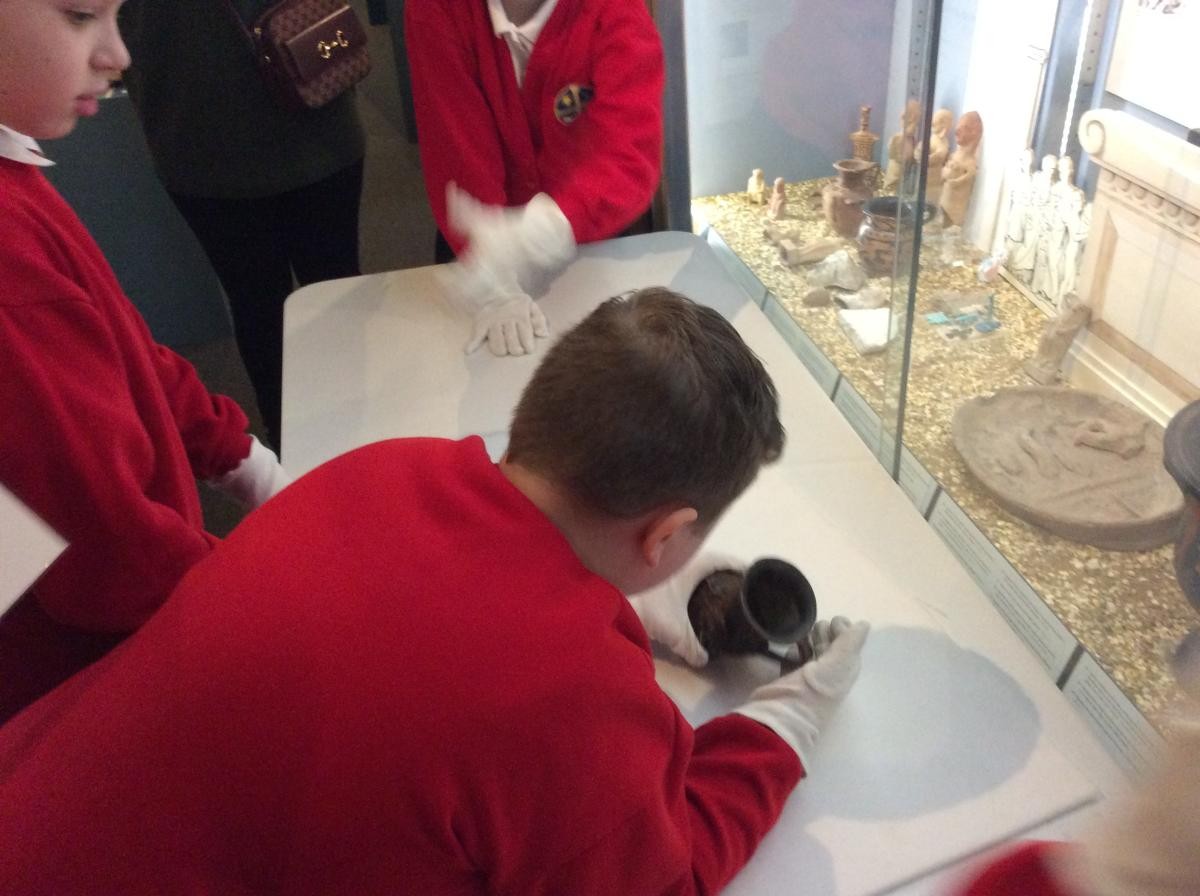 Years 5 and 6 travelled in classes to the Ure Museum at Reading University and spent a morning studying Ancient Greek pottery. They completed a variety of tasks including handling some different pots and trying to work out what they were used for.
