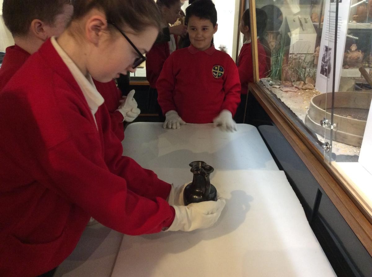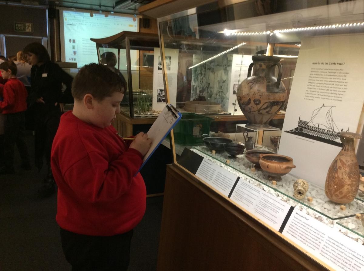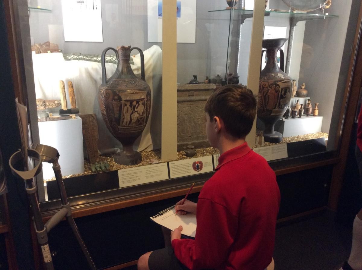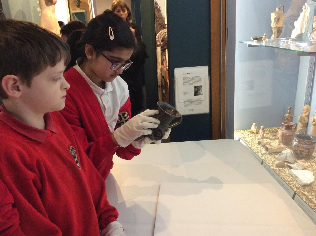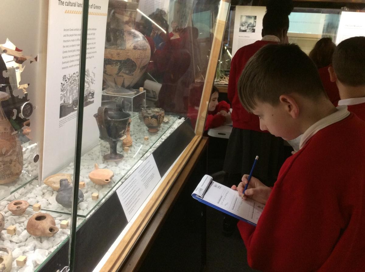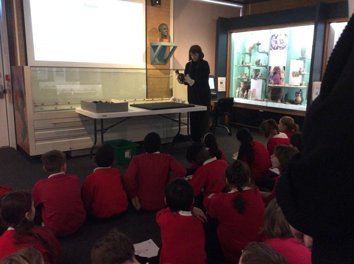 Years 5 and 6 travelled in classes to the Ure Museum at Reading University and spent a morning studying Ancient Greek pottery. They completed a variety of tasks including handling some different pots and trying to work out what they were used for.