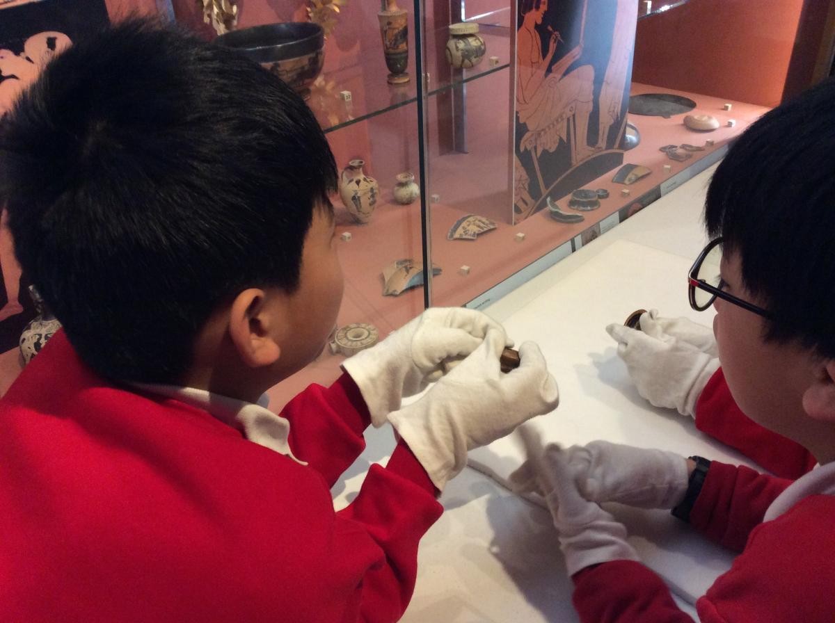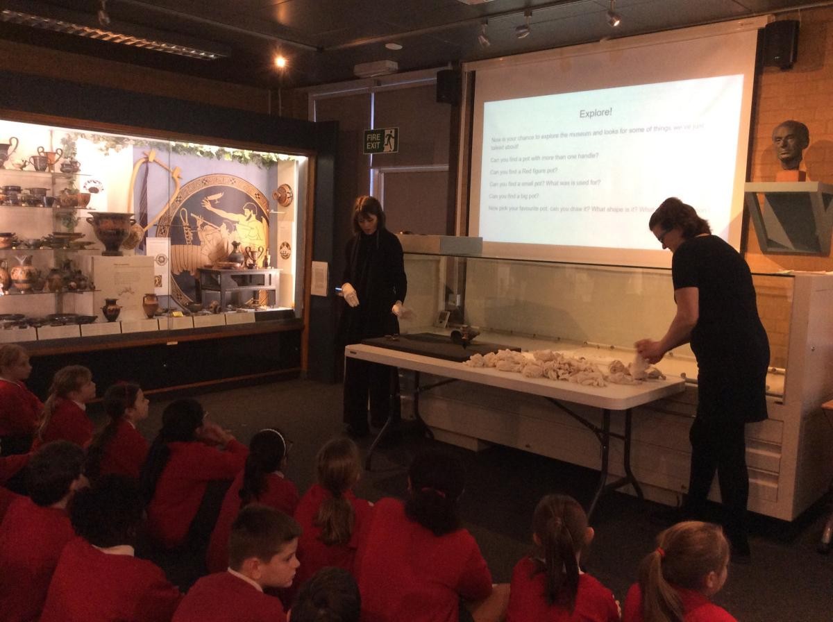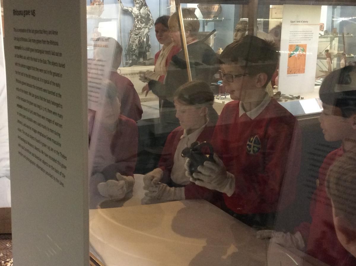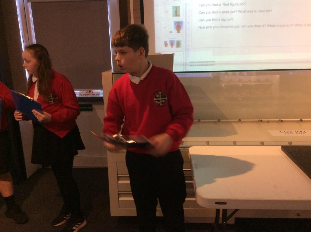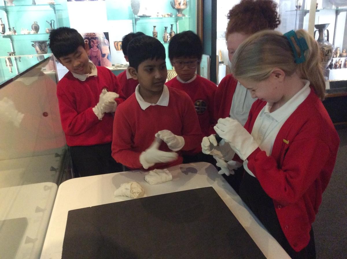 Years 5 and 6 travelled in classes to the Ure Museum at Reading University and spent a morning studying Ancient Greek pottery. They completed a variety of tasks including handling some different pots and trying to work out what they were used for.